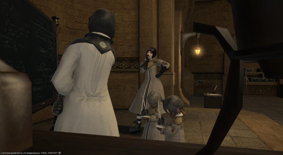 = She hopes that she can eventually help bridge the communication and education gaps between various tribes and nations of Eorzea by becoming a chemistry or machinist teacher. She's even started taking introductory xenolinguistics classes to this end.